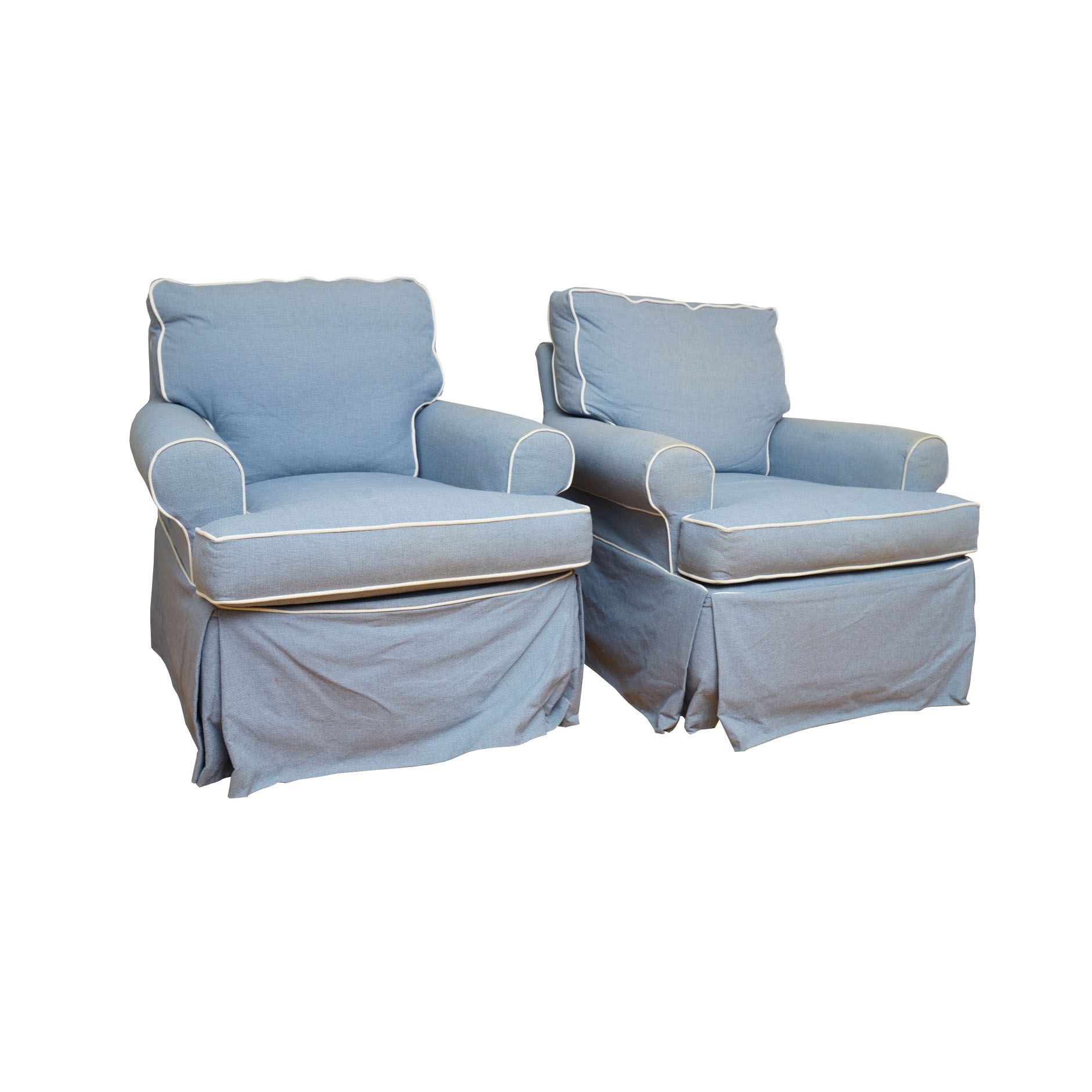 Blue Upholstered Swivel Armchairs By Crate Barrel